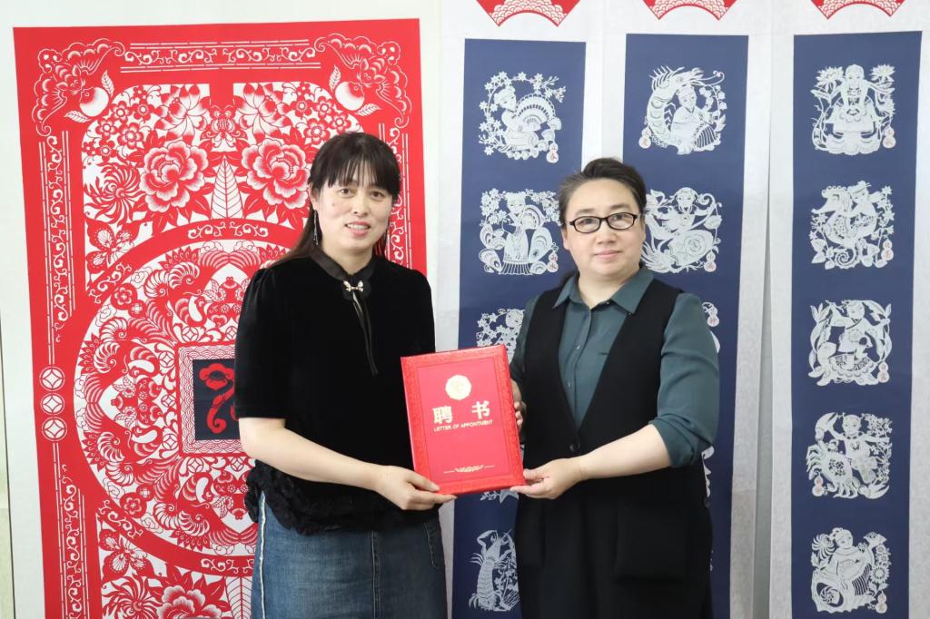 院徽剪纸赠情谊,薪火相传聘名师。精彩的剪纸体验活动后,举行了简朴而有意义的捐赠与聘任仪式。为支持学院文化建设,薛娜老师将精心创作的ac米兰官方网站院徽主题剪纸作品赠予学院。该作品尺寸达 120*120,巧妙地将传统剪纸艺术与学院特色融合,极具艺术价值与纪念意义。甘露露代表学院接受捐赠,并向薛娜老师致以诚挚谢意。随后,甘露露为薛娜老师颁发聘书,聘请其为学院“非遗文化传承导师”。甘露露在致辞中表示,此次聘任标志着学院与非遗传承人深度合作的良好开端,下一步,学院将定期邀请薛娜老师走进校园,开展系列非遗剪纸文化体验活动,引导青年学子在动手实践中体味非遗之美,感悟匠心之韵,真正做到“以美化人,寓教于乐”,让传统文化在青年群体中生根发芽。