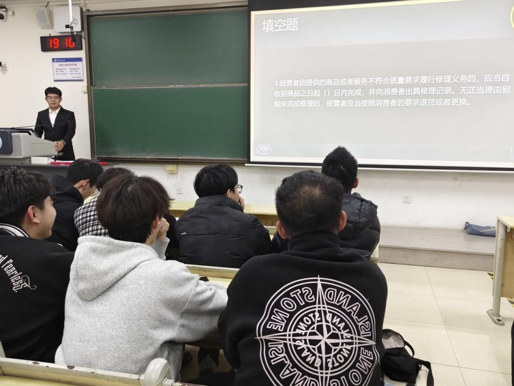 “文明消费,理性维权”知识竞赛活动。本次竞赛设置"团队协作·法治思维""个人思辨·法治信仰""实战抢答·法治践行"三大育人模块。在团队协作环节,各参赛队通过模拟电商维权、预付卡纠纷等现实场景,运用《中华人民共和国消费者权益保护法》《中华人民共和国民法典》等法律工具,系统设计维权方案,展现法治思维与协作能力的双重锤炼;个人思辨环节聚焦"大数据杀熟""直播带货责任认定"等社会热点,要求选手独立完成法律条文解析、司法判例援引及法理逻辑建构,实现法律知识向法治信仰的有效转化;实战抢答环节特别设置格式条款效力认定等问题,通过限时攻防辩论,促使法治精神内化于心、外化于行。“本次活动不仅仅是消费者权益知识的竞赛,更是一堂生动的法治实践课,我们要树牢法治思维、契约精神和规则意识,将维权意识融入日常生活,做理性消费的践行者和权益保护的宣传者。”智造232班刘浩森说道。