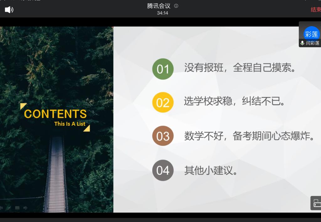 此次主题党日活动是支部“我是党员我来讲”微讲堂的系列活动之一,不仅给即将考研的同学提供了宝贵的经验,指明了前进的方向和动力,使同学们对于考研还是就业有了更具体、更清晰的规划与认识,更进一发挥支部党员的主体作用,让“大主题”通过“小讲堂”入心入耳,在分享交流中强化支部党员的教育,提高支部党员的政治素养。(撰稿:范传君 徐卫晓 审核:林海涛)