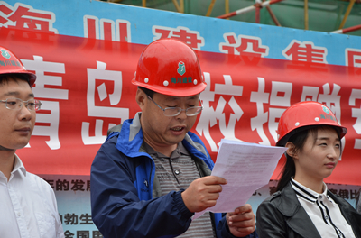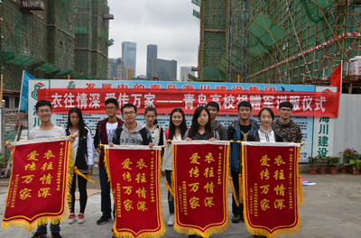 2016年10月16日下午,由青岛理工大学、青岛大学和中国海洋大学共同参加的“衣往情深,爱传万家”军训服装捐赠仪式,在青岛海川建设镇江路项目工地顺利举行。青岛海川建设集团副总裁李尊强、团委书记王群、所在项目部工人代表以及米兰官网黄岛校区红十字志愿服务团团长郭迎雪、市北校区土木学院学生代表刘贞涛和另外两所高校学生代表参加了此次军训服捐赠仪式。