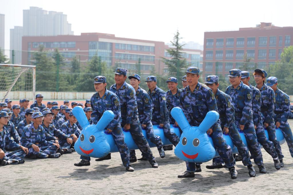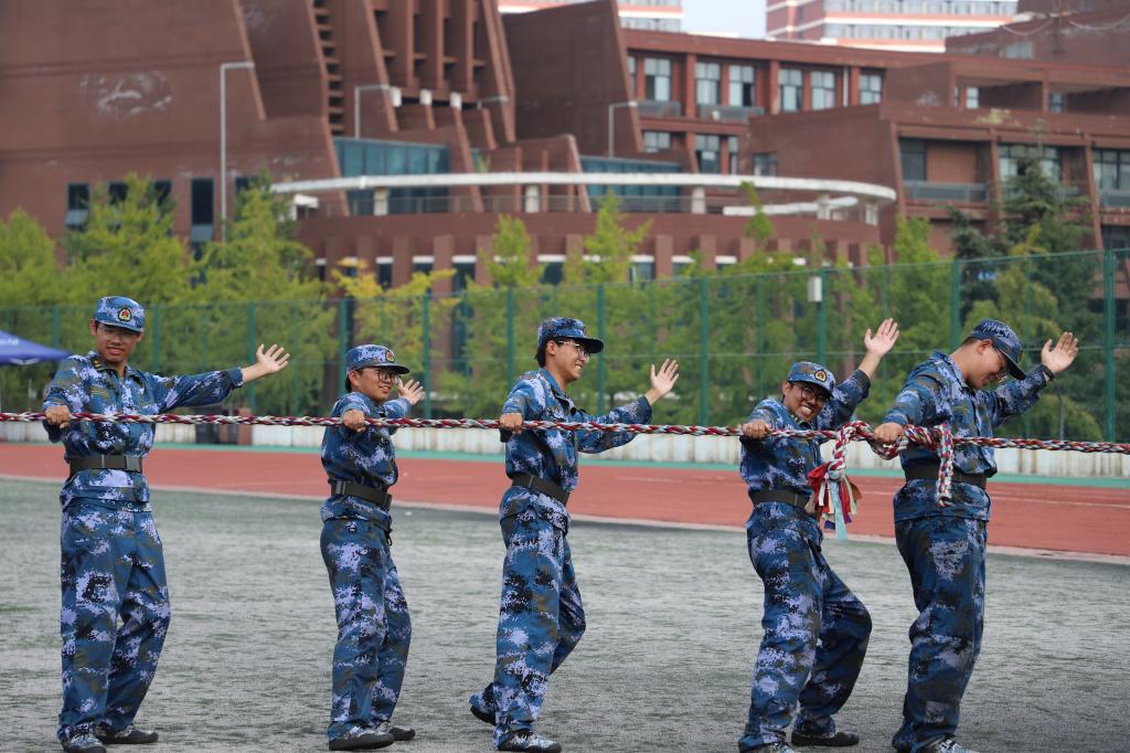 “当我们围成一个圈,一根绳子就不再是一根绳,它紧密连接我们彼此的力量,当每个人伸出一只手,它便变成美丽的‘花开’,好美妙啊!团体力量的强大让我十分感动。”安全243班张宜彤同学不禁这样说道。在活动中,同学们互相支持,依靠彼此合力成功完成了“花开花合”“同起同坐”等各种挑战,提升了默契程度,激发了团队力量。在快乐向前冲环节,学生们团结协作、齐力向前,现场气氛活跃,响亮的口号和整齐的动作成为军训场地一道亮丽的风景。