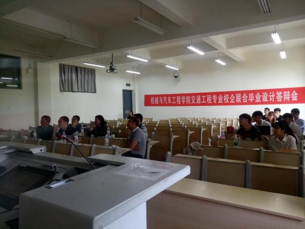 2018年6月15日,ac米兰官方网站举行校企联合毕业设计答辩会。答辩委员会由校内教师和企业专家组成,企业专家包括来自中国石油集团海洋工程(青岛)有限公司、山东豪迈机械科技股份有限公司、山东欧泰隆重工有限公司、山东云内动力有限责任公司、山起重型机械股份公司、中际旭创股份有限公司、青岛城建集团有限公司、青岛东佳纺机(集团)有限公司、青岛华瑞汽车零部件有限公司、青岛华瑞丰有限公司、青岛茂源停车设备有限公司、青岛万科青岛小镇项目部、青岛金晶股份有限公司、青岛海科佳电子设备制造有限公司、青岛海之冠汽车配件制造有限公司等单位在内的共计16位高级工程师。答辩会涉及的专业包括机械设计制造及其自动化、车辆工程、安全工程和交通工程等4个专业,参与答辩的学生包括了以上4个专业的全体学生。