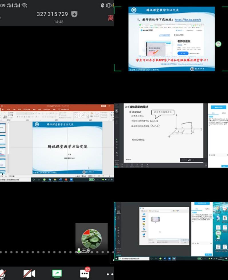 上午10时,全院教师如约而至,共同在腾讯会议云端参加了这次特殊的培训交流会。首先,郭峰院长讲话,对大家在疫情期间在线教学所付出的努力工作表示肯定,同时指出,线上教学既是目前疫情时期的一种特殊的教学方式,也为将来实现线上线下混合教学做好准备。接着,学院教师王东为大家介绍腾讯课堂平台使用与技巧,王东从腾讯课堂软件的下载安装到功能介绍,详细的通过PPT为大家进行了讲解,并将自己利用该软件上课的操作流程通过屏幕共享为大家一一展示;孟娟分享了智慧树平台与混合式教学经验,并以自己的《建筑施工安全》课程教学为例,详细的介绍了该课程通过智慧树平台,完成从课前导学—在线学习—作业测验—总结反馈的教学过程。最后进入线上自由讨论环节,各位教师就线上教学遇到的问题互相沟通交流,提出解决方案。