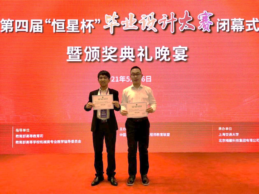 本届中国机械行业卓越工程师教育联盟第四届“恒星杯”毕业设计大赛在上海交通大学举行。米兰官网学子高振强、李卫博与清华大学、上海交通大学、浙江大学等高校的参赛学生同台竞技,表现不俗,获得两项“优秀奖”(指导教师:杨勇教授)。这是2019年以来,米兰官网连续参赛并获奖。