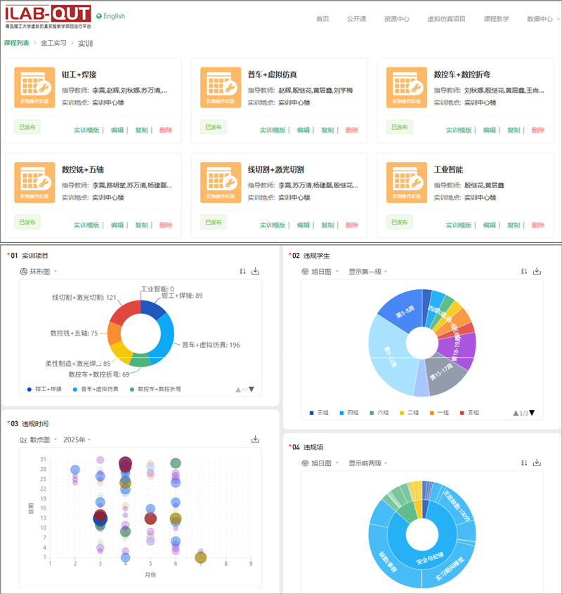 与此同时,为切实构建实训教学“数智化”管理闭环,工程训练中心深度梳理并量化了传统实操实训项目的考核标准与扣分规则,使之更客观、精细、可追溯,在充分利用学校“智慧理工”统一身份认证系统及校级虚拟仿真实验教学平台资源基础上,创新推出“青理工·匠造π”一码通管理工具,实现了对学生实训全过程中安全纪律、操作规范及创新总结的全程数字化跟踪与管理,显著提升了实训教学的管理效率以及学生考核的科学性和透明度。