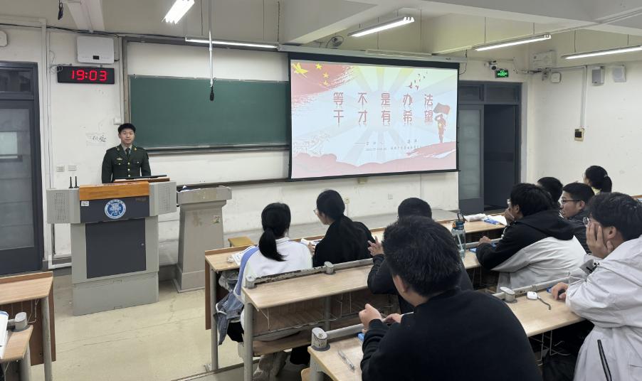 为深入贯彻党的强军思想,积极响应国家征兵号召,进一步激发广大青年学生的爱国情怀与国防意识,10月23日,ac米兰官方网站在主教学楼B131举办应征入伍启蒙教育活动。本次活动邀请了学院退役士兵蒋洋和孙可参与。